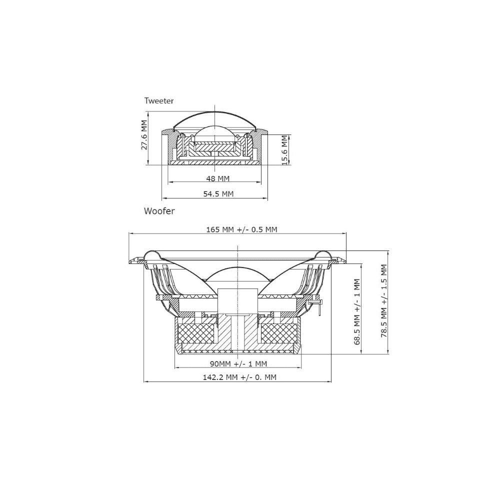 Das elegante 16.5cm 2-Wege System überzeugt mit enorm hoher Auflösung und sehr klarem Sound. Durch die speziell beschichtete Membran sind die Tiefmittelton-Lautsprecher besonders stark und präsent im oberen Frequenzbereich und ermöglichen eine sehr leichte und angenehme Anbindung an den Hochtöner. Der große 28mm Hochtöner hat dazu einen sehr sanften Klang und keine schrillen Eigenschaften, welches das Gesamtbild abrundet und jede Fahrt zum Hörgenuss macht.