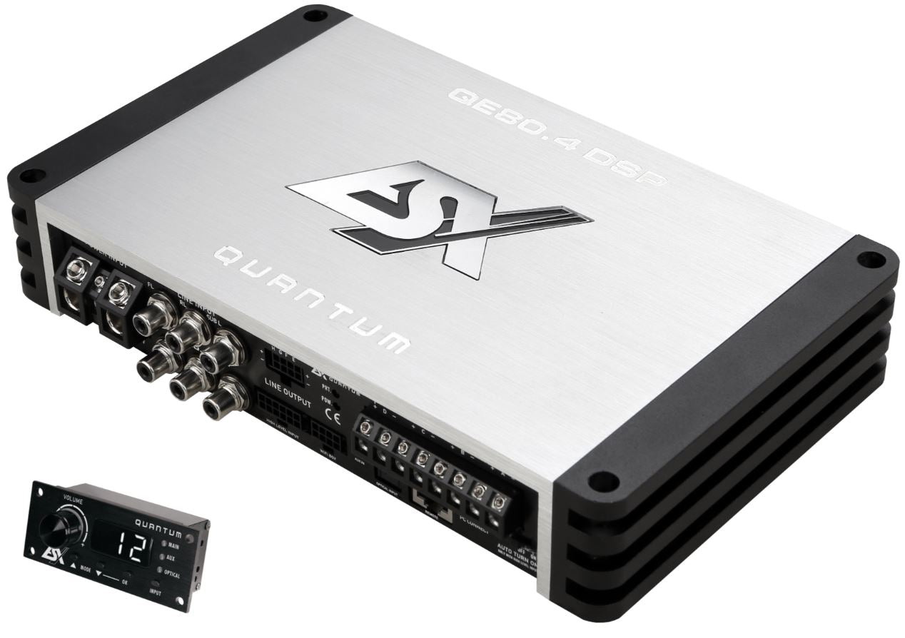 Mit der QUANTUM QE DSP Serie vereint ESX gekonnt Class D Power mit innovativer DSP-Technologie. Die drei Verstärker bieten eine souveräne Klangperformance dank integriertem DSP Prozessor, welcher mit der beiliegenden X-CONTROL 2 Software optimal eingestellt werden kann. Ermöglicht werden damit enorm viele Einstellungsmöglichkeiten und Konfigurationen die keine Wünsche offen lassen - auch für sehr komplexe Soundsysteme und in sich geschlossene Werksanlagen.