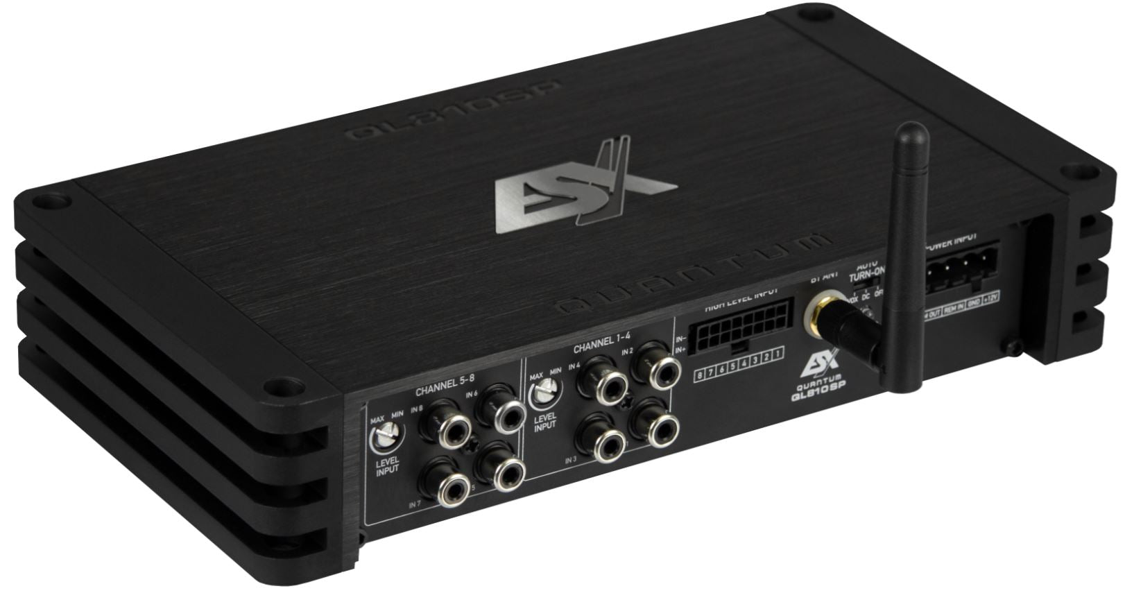 Mit den beiden Prozessoren QUANTUM QL zeigt ESX, was echte High End DSPs leisten können. Schon die Bestückung ist vom Feinsten: Nicht nur, dass edle 32-Bit Wandler von AKMs 5er Serie verbaut wurden, es kommen gleich zwei der ADAU1452 und somit der besten Prozessoren von Analog Devices zum Einsatz. Genau hier trennt sich die Spreu vom Weizen: Herkömmliche DSPs verfügen meist nur über einen DSP-Core. Hat ein DSP jedoch viele Kanäle und entsprechend Ausstattung, wird Rechenpower knapp. Nicht so bei den neuen ESX-Topmodellen, im Gegenteil. Die beiden QL-DSPs verfügen über soviel Reserve, dass sie locker nicht nur 12 Kanäle prozessieren können, sondern die Entwickler implementierten nebst zahlreichen Funktionen auch noch den revolutionären ESX Expert Staging Equalizer mit Balance- und Pegel-Funktion, der weitere Raffinessen bei der Feinabstimmung ermöglicht. Dank dem integrierten Bluetooth-Empfänger, kann die App-Version des ESX DSP Toolkits live und in Echtzeit vom Smartphone aus genutzt werden - HD Audio Streaming inklusive. Weiteren Bedienkomfort bietet die als Zubehör erhältliche LCD-Fernbedienung RC-DQ.