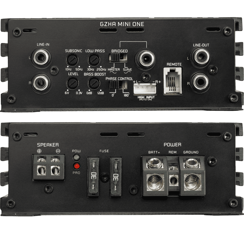 1-Kanal Subwoofer-Verstärker mit hoch effizienter Class D Schaltung, integrierter Aktivweiche und kompakten Abmessungen