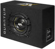 Die QUANTUM QXB Bassreflex-Gehäuse bestechen durch eine sehr kompakte Bauweise. Mit einer Anschluss-Impedanz von jeweils 2+2 Ω kann der Subwoofer auch in 4 Ω oder gar in 1 Ω betrieben werden, um das Maximum aus dem Verstärker herauszuholen. Dank der großen Schwingspulen (50 mm bei QXB6 und 64 mm bei QXB8 und dem neuen QXB10 Modell) sind diese Subwoofer neben dynamischen Basspegeln auch für hohe Leistungen ausgelegt und können mit kräftigeren Amps betrieben werden. Durch die flache Konstruktion finden die neuen QXB Gehäuse in fast jedem Fahrzeug den passenden Platz. Mit einer Gehäusehöhe von nur 16 cm kann die QXB6 Box sogar in einem doppelten Boden des Kofferraums Platz finden oder z.B. hinter dem Sitz. Durch die mitgelieferten Schutzgitter werden in allen Modellen die Tieftöner optimal geschützt. Optional können bei den QXB6 und QXB8 Boxen auch Standfüße montiert werden, die damit als Downfire-Gehäuse einsetzbar sind. Damit kann die obenliegende Seite als Ablagefläche im Kofferraum dienen, während der Subwoofer nach unten "feuert".