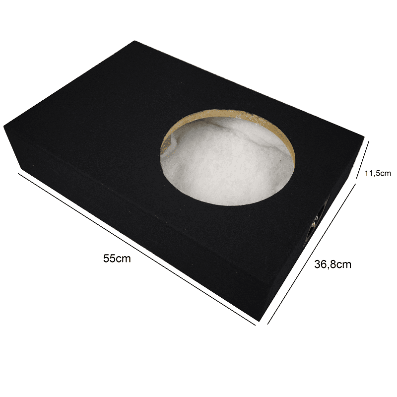 Qualitativ hochwertiges Auto-Connect Subwoofer-Leergehäuse für eine saubere Bass-Wiedergabe. In diesem Gehäuse können überwiegend Flach-Subwoofer platziert werden und sind universal einsetzbar. Das massive MDF-Gehäuse sorgt für Stabilität, Anschlussterminals für schnelles an- und abklemmen. Um einen sauberen und runden Sound sicherzustellen, wurde das Gehäuseinnere mit Watte ausgefüllt, für eine wärmere und dröhnfreie Wiedergabe.