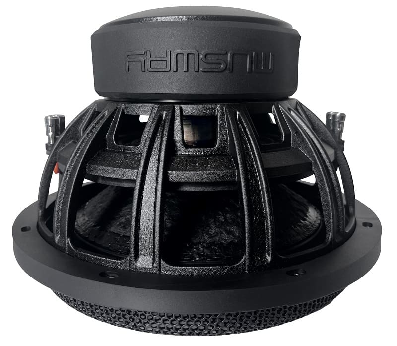 Nicht nur die erste Optik überzeugt, auch die Technik im Detail kann sich sehen lassen: Alle Tieftöner zeichnen sich durch einen besonders langen und gleichmäßigen Membranhub aus. Beim MG12 sind es bis zu +/- 22 mm, d.h. ein Gesamthub von stattlichen 44 mm ist möglich! Diese enorme Auslenkung wird durch speziell geformte Dual-Spider aus Polycotton gesteuert, deren Eigenschaften von den MUSWAY-Toningenieuren in Labor- und Klangtests kontinuierlich optimiert wurden. Auch die bewegte Masse (Mms) konnte durch den Einsatz von kupferkaschierten Aluminium-Schwingspulen (CCAW) gering gehalten werden. Durch alle Maßnahmen ergeben sich sehr günstige Thiele/Small-Parameter, so dass sich die Subwoofer auch für geschlossene Gehäuse sehr gut eignen. Herausragend ist hier der MG10, der mit einem Lautsprechervolumen von 25 Litern bis 43 Hz (-3 dB) tief und sauber in den Basskeller spielt. Wer großen Wert auf hohe Impulstreue und Sauberkeit legt, sollte sich für diese Variante entscheiden.