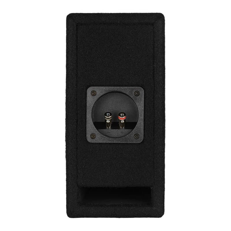 Das VE65 ist ein robustes, belüftetes Subwoofer-Gehäuse für einen einzelnen 6,5-Zoll-/16,5-cm-Subwoofer. Mit einem angenehmen schwarzen Teppich versehen, liefert dieses Subwoofer-Gehäuse kräftigen Bass, ohne dabei viel Kofferraumplatz zu beanspruchen.